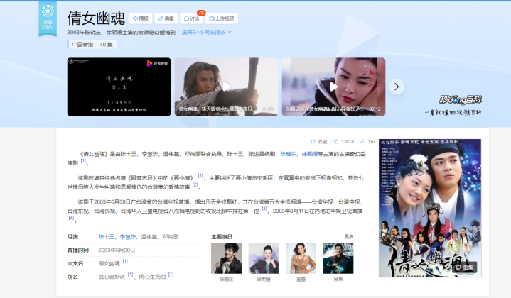 谈及大S的影视作品,好多东谈主第一印象即是《流星花圃》、《泡沫之夏》这种偶像剧,但可能好多东谈主不知谈的是,22年前的2003年,大S曾和香港演员陈晓东协作出演了一部电视剧《倩女阴灵》,没错,大S演的变装即是聂小倩。