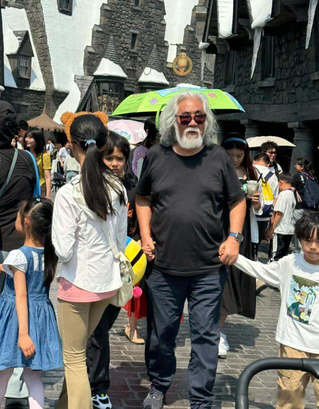 5月25号,许多粉丝皆称在北京环球影城偶碰到了张纪中一家东说念主,像片中张纪中两手分辨牵着一个孩子。