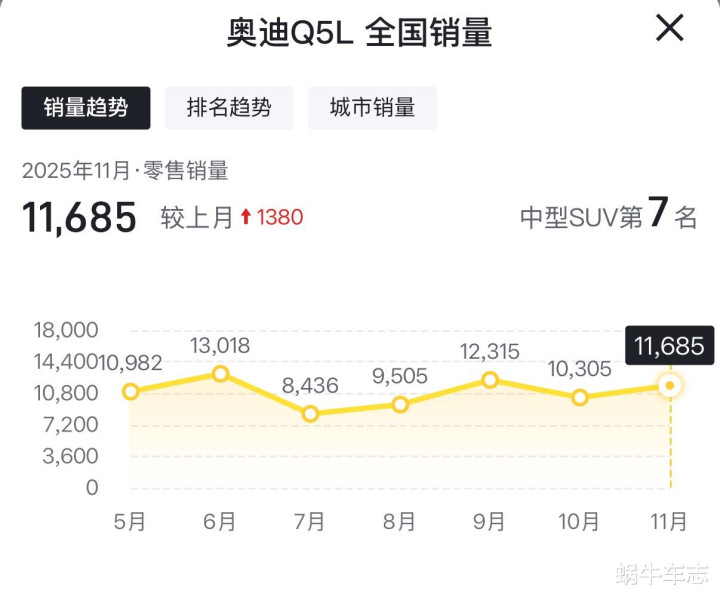 天然全新一代更香,但现金也不成说就获胜该pass掉了,毕竟也曾到来新素轮换节点,现金Q5L在2025年年底,它仍然是月月过万的苍劲施展,以至高出也曾换代过的飞驰GLC/良马X3。