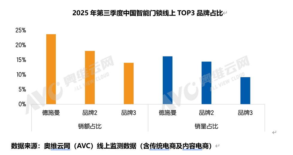 据奥维云网最新数据浮现,2025年第三季度,德施曼在线上商场已毕零卖额与零卖量双第一的全面跳跃。诱骗618与双11双冠战绩及巨擘机构数据,德施曼已提前锁定2025年智能锁销冠。