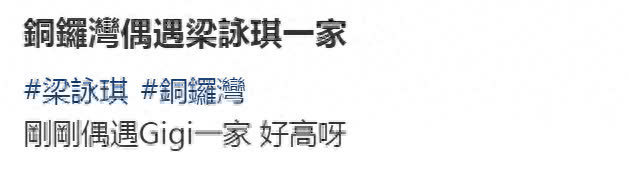 10月12日,有香港网友共享出在铜锣湾偶遇梁咏琪一家三口动态,并附文感触一家东说念主个头都好高。