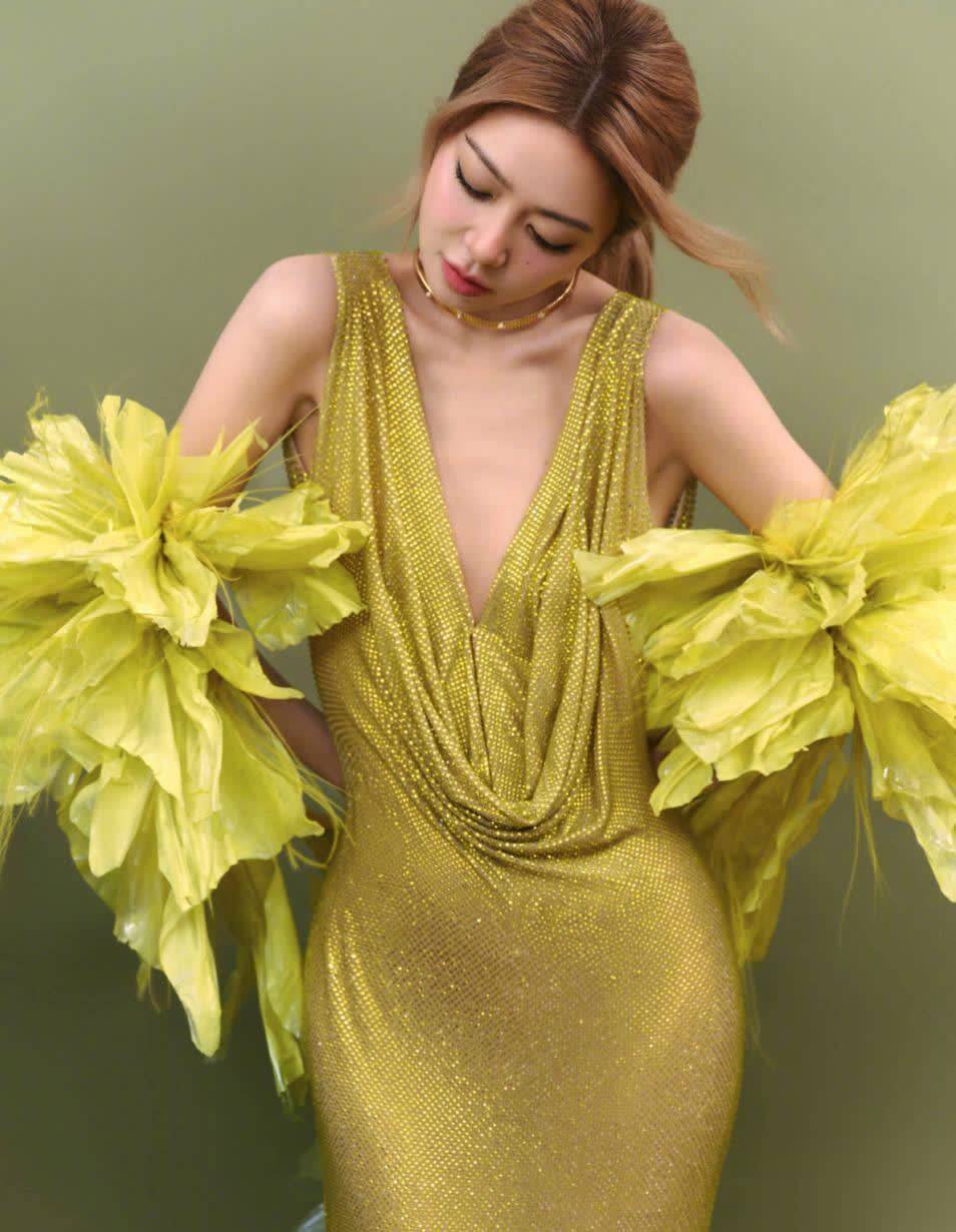 第三张像片里,薛凯琪去掉了羽毛结巴,单穿这件深 V 金色投降,更能聚焦于她本人的魔力。她的姿态优雅,背部线条畅通,每一处细节王人在透露着什么叫 “骨相好意思”,岁月在她身上仿佛只留住了和气的千里淀,莫得涓滴踪迹。