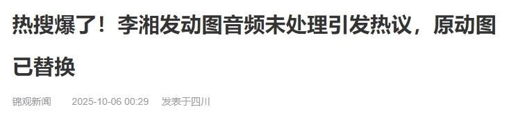 参考贵寓:锦不雅新闻《热搜爆了!李湘发动图音频未处理激发烧议,原动图已替换》